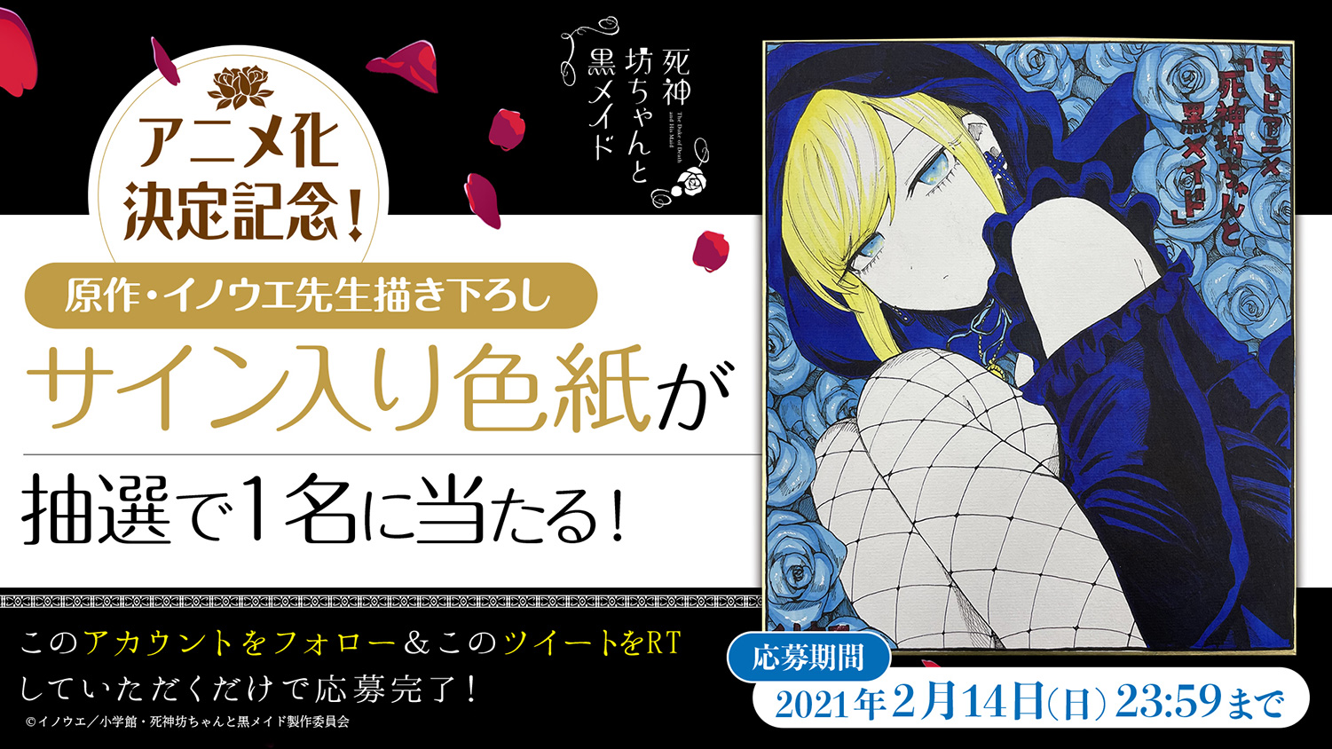 『死神坊ちゃんと黒メイド』TVアニメ化決定を記念して、「原作・イノウエ先生描き下ろしサイン入り色紙」が当たるTwitterフォロー&RTキャンペーンを開催します!