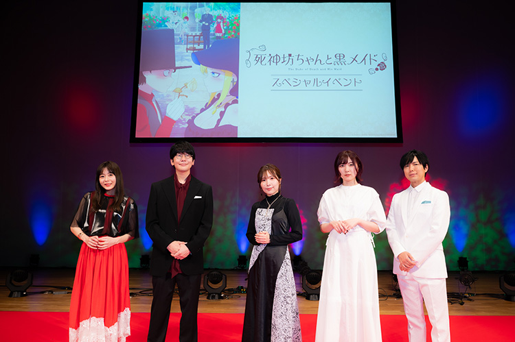 「触れたもの全てを死なせてしまう」という呪いを魔女にかけられた坊ちゃんと、彼に仕えるメイド・アリスの純愛を描いたTVアニメ『死神坊ちゃんと黒メイド』の初の有観客イベントが、7月9日(土)習志野文化ホールで開催されました。